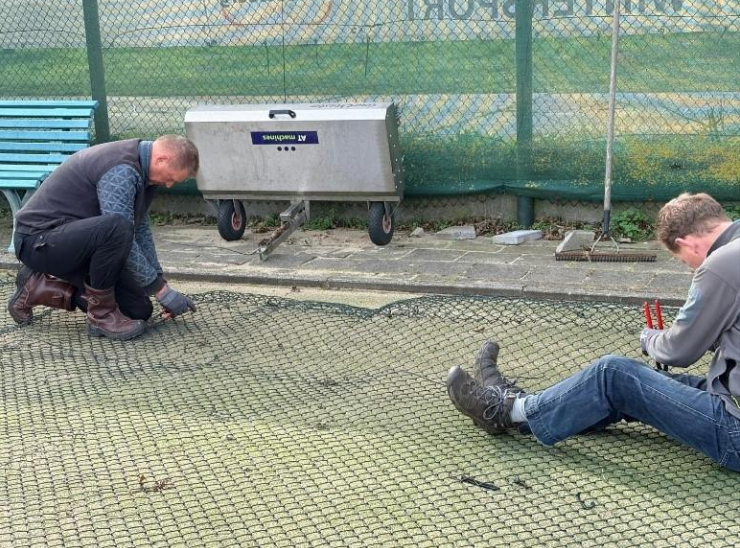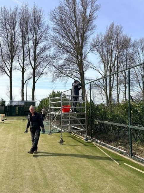 Onder bezielende leiding van onze hoofd baanonderhoud, Arthur Marees, werd vanaf 09.00 uur één en ander aangepakt.