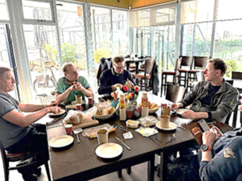 Voorzitter Koos zorgde voor een voortreffelijke lunch en die werd zeer op prijs gesteld door de werkers.