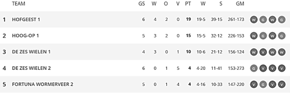 Hieronder de poulestand op dit moment: