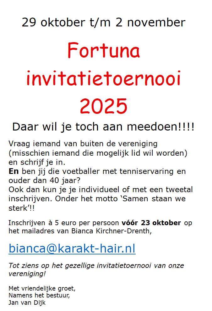 Tot ziens op het gezellige invitatietoernooi van onze vereniging!